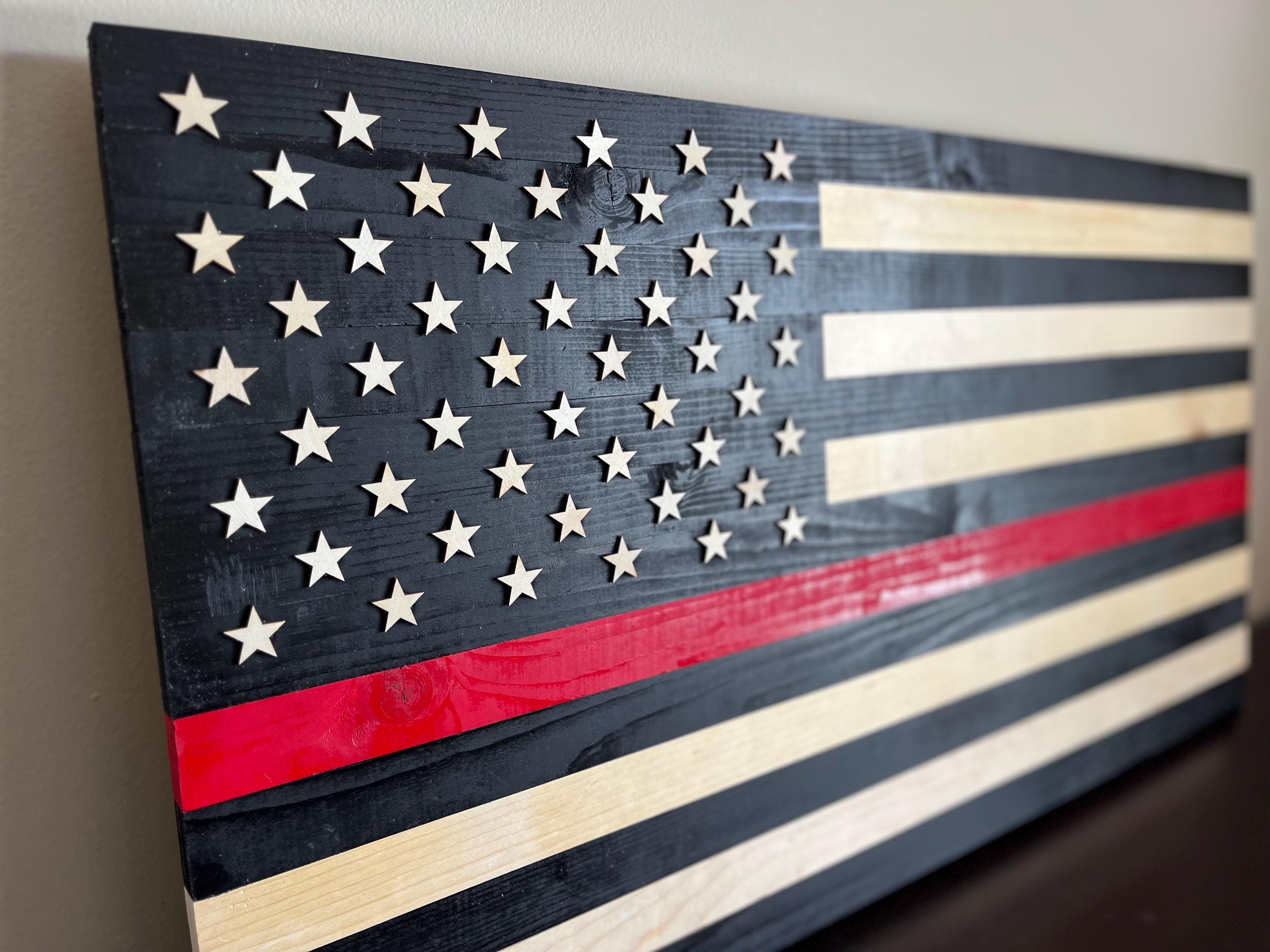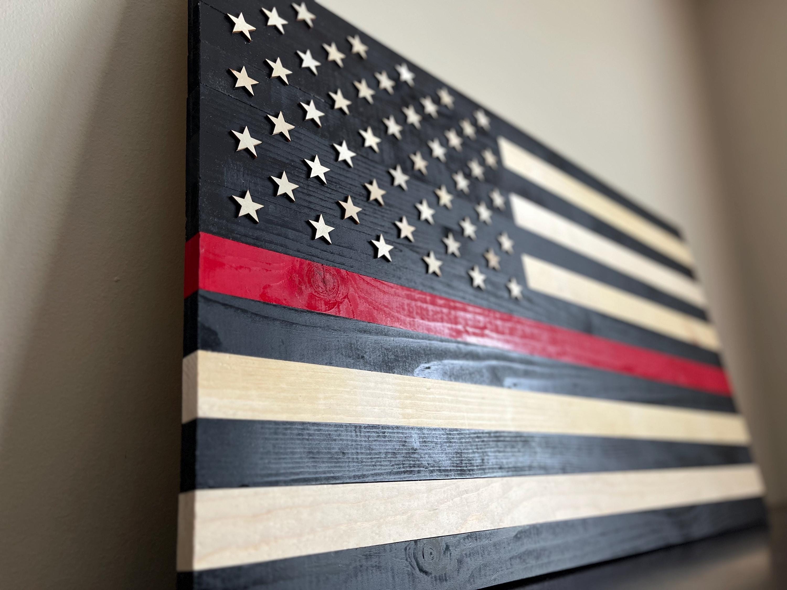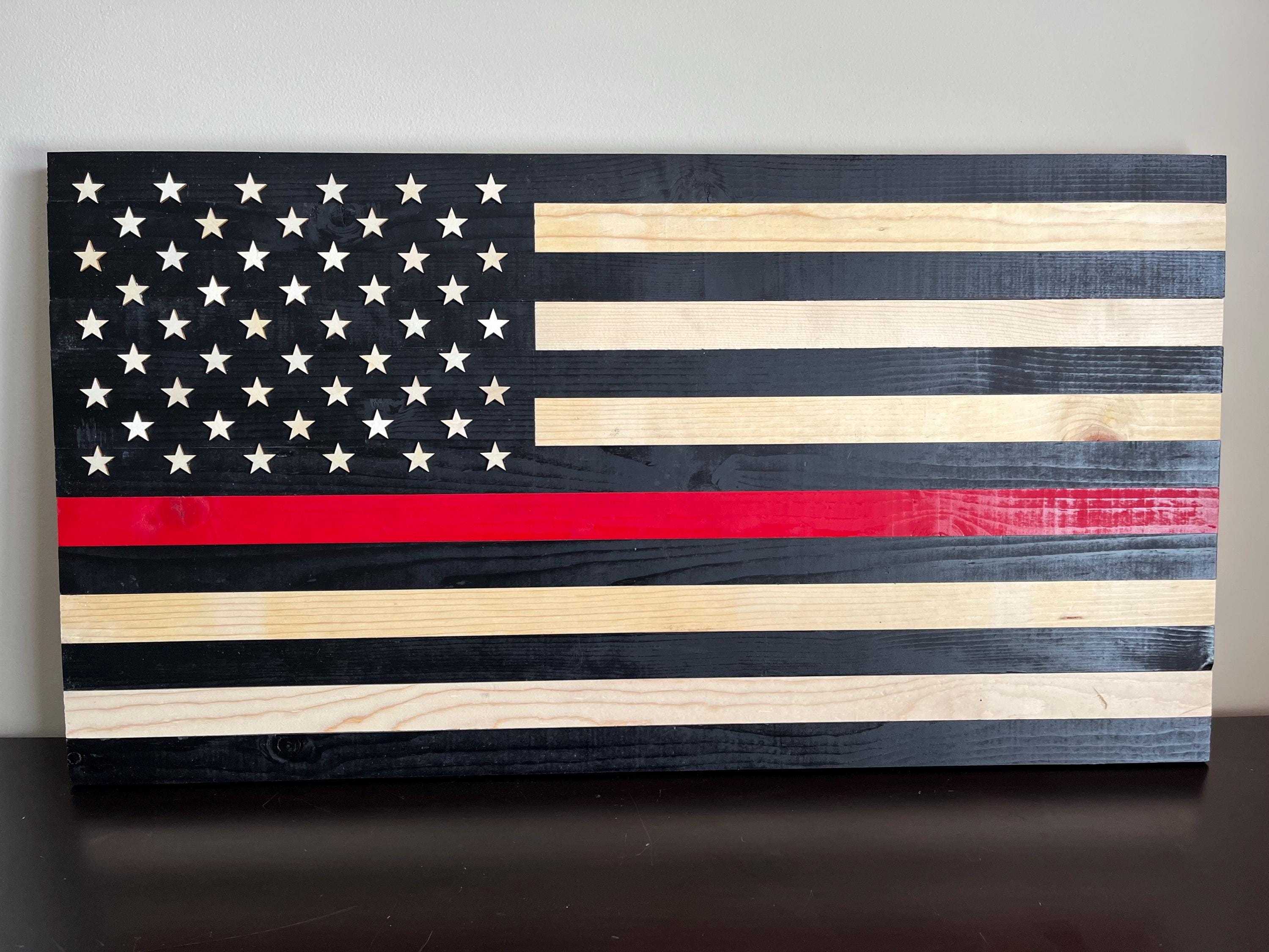 Thin Red Line Wooden American Flag: Firefighter Gift, Rustic Wall Art